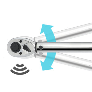 Torque wrench can be used both clockwise and counterclockwise. Clicking sound in the handle alerts user when torque value is reached, preventing over-applying torque.