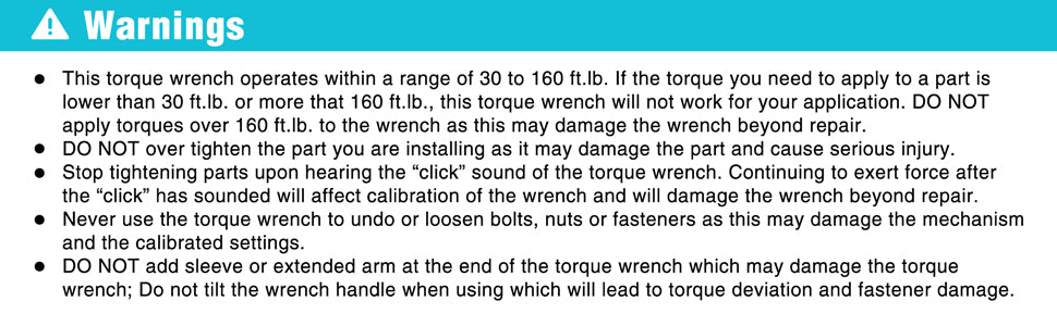 1/2" Drive dual-direction torque wrench delivers 30-160 ft.lb/40.7-217N.M of torque for daily long-term industrial use