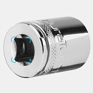 All drive sockets are forged from hardened chrome vanadium (Cr-V) steel, then heat treated, polished, corrosion-resistant chrome plated finish for maximum strength and durability.