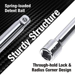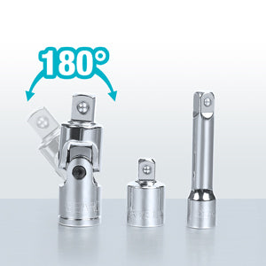 - All the extensions, adapter and universal joints are made of premium high-strength chrome vanadium, features a corrosion-resistant chrome plated finish for industrial, mechanic or construction work.