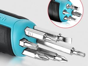 The handle is equipped with a bit storage function, which can store 6 bits, prevent the bit from slipping and losing, and make it easy to carry.