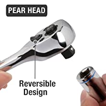 - Sockets are locked onto the ratchet tang by a detent ball and locking pin so that they can't fall or be pulled off.