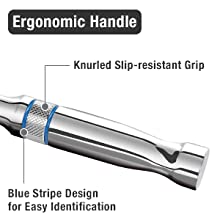 Delivers torque at multiple angles for maximum reaching around tight spaces and generating optimized leverage