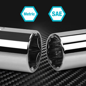 - 8 - 6 pt metric deep sockets: 12, 13, 14, 15, 16, 17, 18, 19-mm